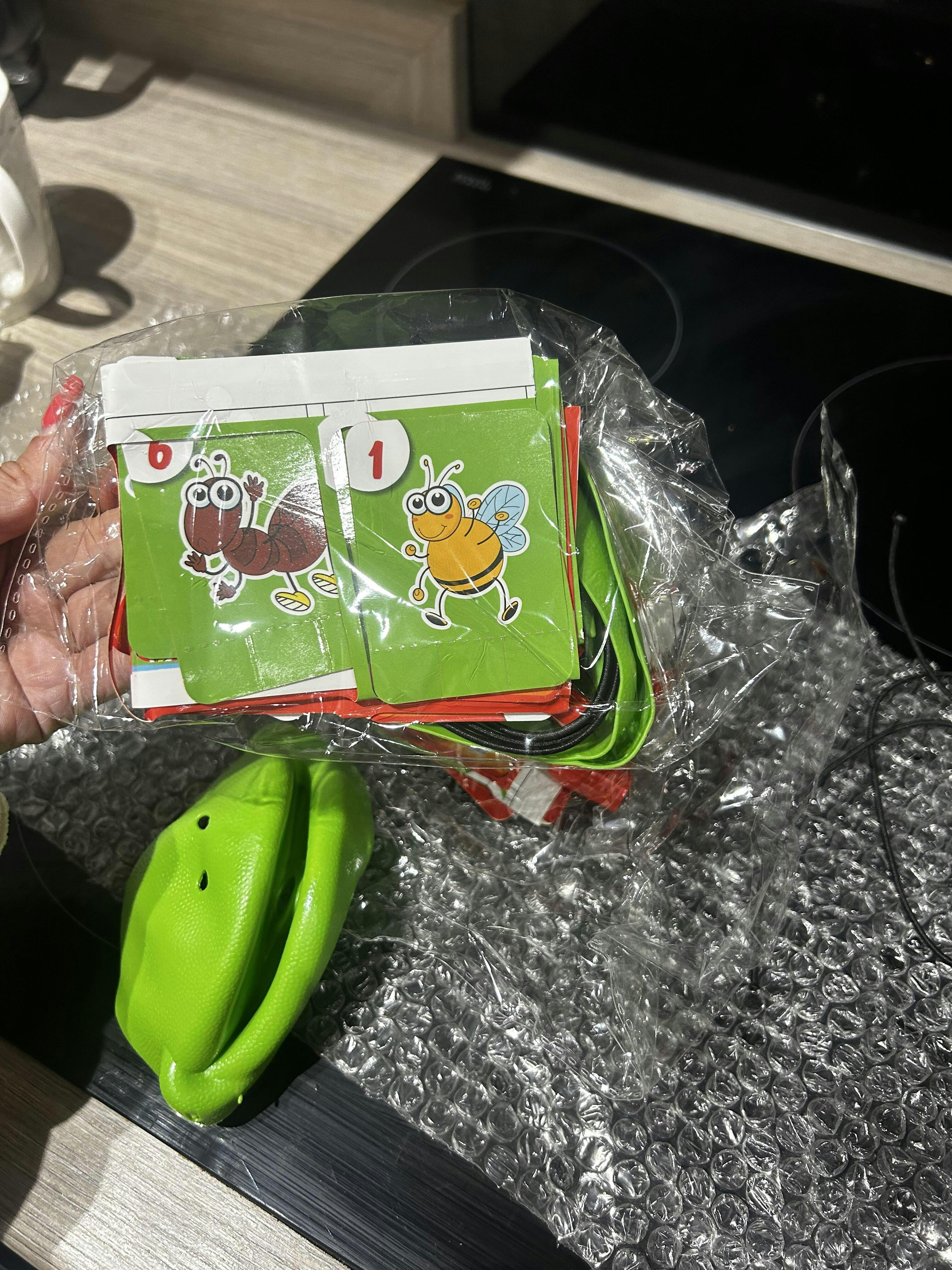- Contents: Frog masks with roll-out “tongues”, target cards (bugs, numbers, etc.)